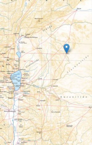 The ancient Aere (or Aram) is identified with the modern As Sanamayn (or Es Sanamein) in Syria. Aram, kingdom of the Arameans, is the biblical word to designate Syria. Excavations carried out in 2009 uncovered the remains of two thermal buildings from the Roman era1. In the Bible, Aëra appears under the designation of the land of Aram.