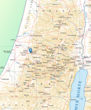 Eusebius of Caesarea and Saint Jerome, the translator of the Vulgate, identify Arimathea with Ramah (Judea) of Samuel in the region of Ephraim. This is what Andrew the Apostle Chouraqui also retains in his translation by naming Joseph of Arimathea "Joseph of Ramah (Judea)taim".[4] It is indeed under this designation of Ramah (Judea)taim (or Ramah (Judea)thaïm) that the Book of Maccabees designates Ramah (Judea) of Samuel.[5]