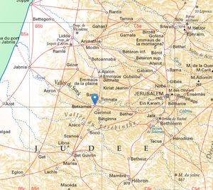 From a hill overlooking the area, Jesus describes the surroundings to his Apostles: "... And nearby, Betsames, the priestly city of Judah, where the Philistines returned the Ark with the golden vows imposed on the people by the diviners and priests to be freed from the plagues that tormented the guilty Philistines "[2].