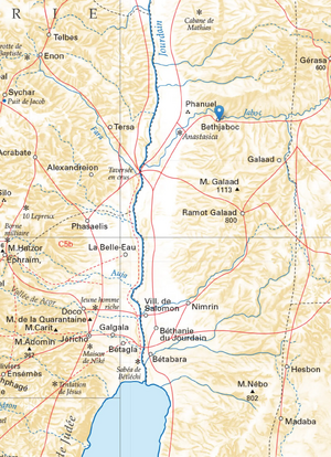 Bet Yabboq - Beth Yabboq, a village located on the banks of the Yabboq (Jabbok), now the nahr Zarqa. This village is not precisely located. It may be the Adam's ford or a village near it.