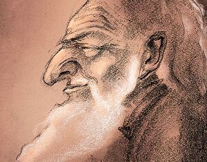 "Mocking jackal, cruel and harmful" says Lazarus about him, forced to negotiate Jonas' freedom.[7] "He is an old man with the hard profile of an old raptor. An ironic look, a mouth like a snake that sketches a false smile in his beard, more white than black. Small, somewhat stooped, parchment-like, in his robe of an impressive breadth and abundance of fringes."