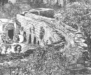 “Here they are in the vicinity of Engannim. It must have been a beautiful little town well supplied with water that came from the hills by an aerial aqueduct, no doubt built by the Romans.”.[1]The existence of this aqueduct, which now seems to have disappeared, is attested in this 19th-century engraving.[2]