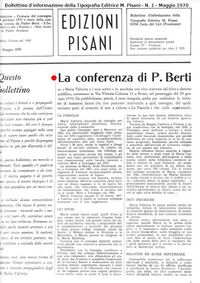 In the first issue of Bollettino valtortiano, the publisher publishes on the front page the text of the conference by Father Corrado Berti on "Maria Valtorta and her writings." It was given on January 29, 1970, in an art and culture circle, "La Fiaccola," located at 11 Via Vittoria Colonna in Rome before a large audience. It had been ten years, almost to the day, since the Indexation had been published and four years since the procedure had been abolished in law and as a consequence.