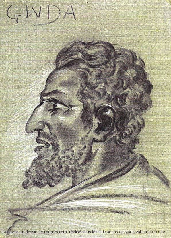 Dessin de Judas par Lorenzo Ferri selon les indications de Maria Valtorta. Source : fond documentaire de la Fondation Héritière de Maria Valtorta.