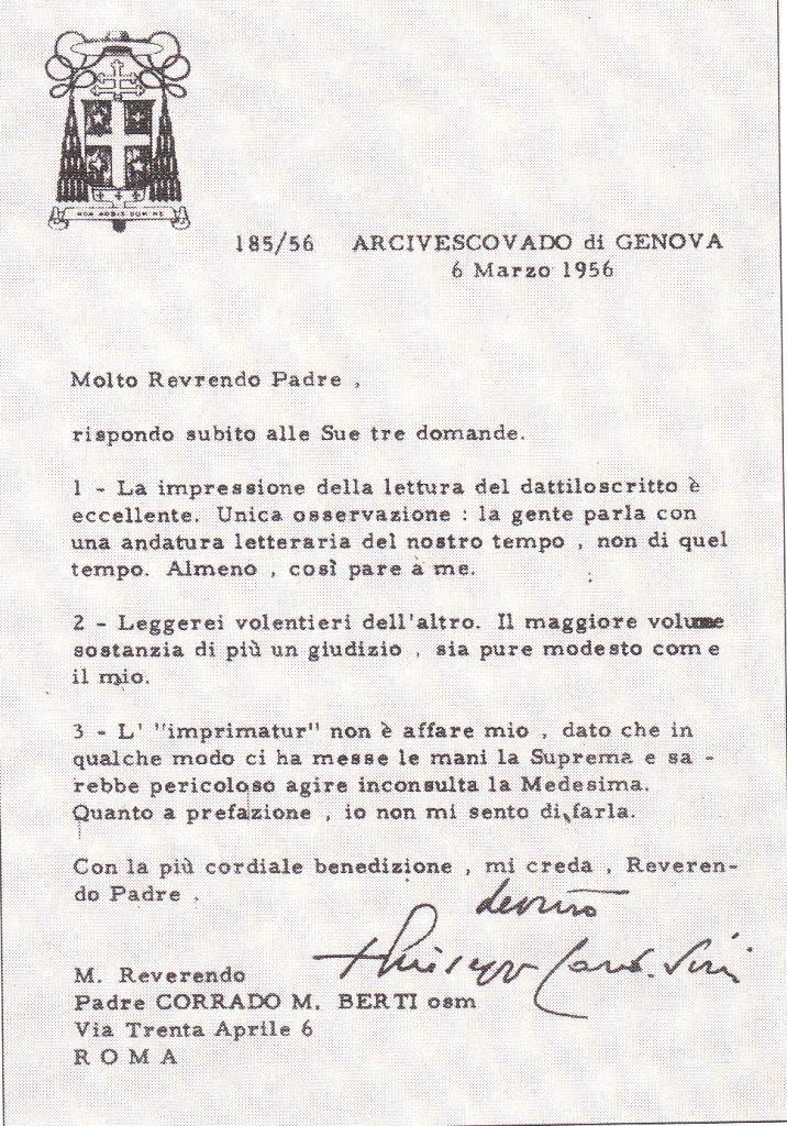 Lettre du Cardinal Siri au Cardinal Ratzinger en 1985