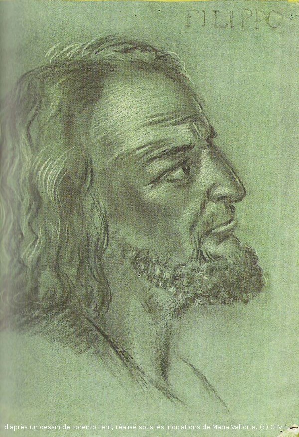 Dessin de Philippe par Lorenzo Ferri selon les indications de Maria Valtorta. Source : fonds documentaire de la Fondation Héritière de Maria Valtorta.