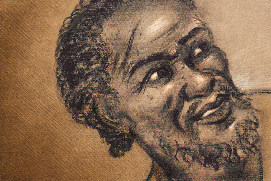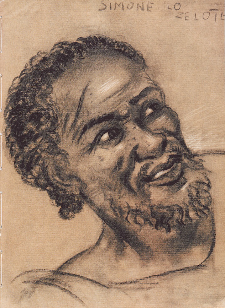 Dessin de Simon le Zélote par Lorenzo Ferri selon les indications de Maria Valtorta. Source : fonds documentaire de la Fondation Héritière de Maria Valtorta.