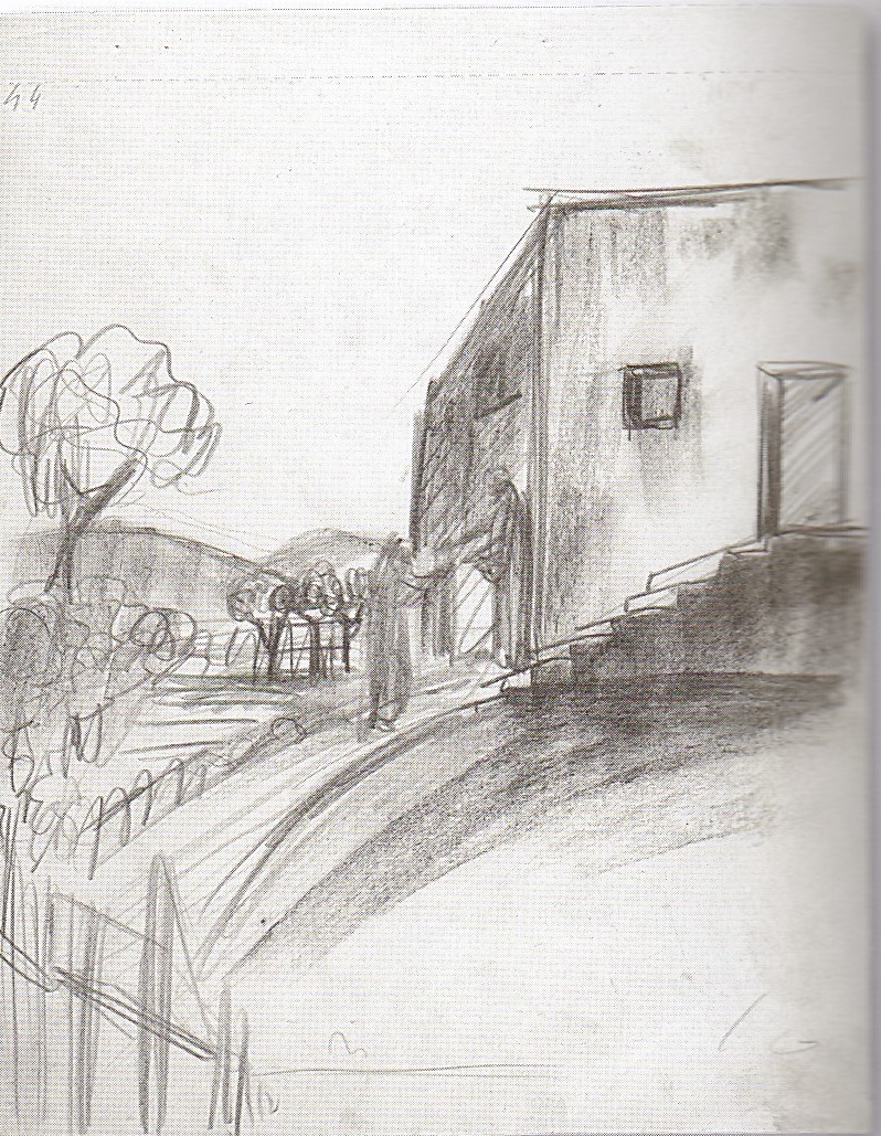 La visitation. Croquis de Lorenzo Ferri d'après les indications de Maria Valtorta. Fonds d'archives de al Fondazione Erede di Maria Valtorta. Isola del Liri.
