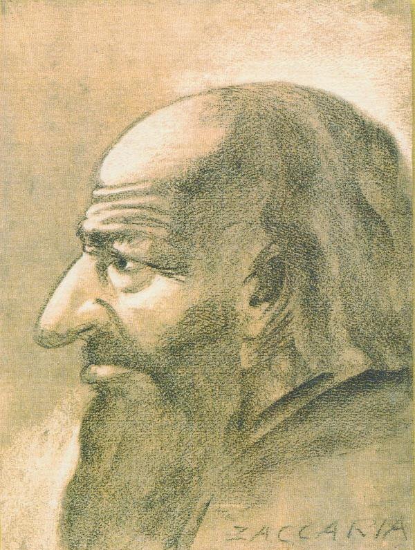 Dessin de Zacharie par Lorenzo Ferri selon les indications de Maria Valtorta. Source : fonds documentaire de la Fondation Héritière de Maria Valtorta.