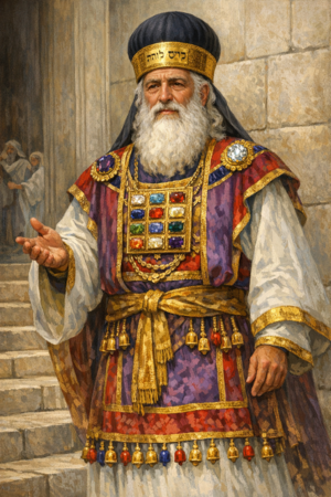 The high priest, at the time of Jesus, is the highest religious authority in Judaism. He is the heir of the Aaronic lineage, presides over the Temple Worship in Jerusalem, offers the most solemn sacrifices — notably that of Yom Kippur (Day of Atonement) —, during which he alone would enter the Holy of Holies to offer the atonement sacrifice for the people. He exercises a decisive influence within the Sanhedrin as seen in the Trial of Jesus. Under Roman rule, his function retains major spiritual prestige, but its exercise is closely monitored by the political power, which can appoint or remove him.