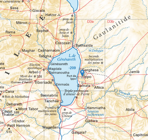 "The city, slightly above the lake level, extends over the first undulations of the high plateau beyond the lake that rises to the east to join to the southeast the mountains of the Auranitis and to the northeast the mountain group dominated by the great Hermon. It presents itself well, with its wealthy merchant houses and estates, and it is important as a road hub and center of many regions beyond the lake, as indicated by the milestones bearing the names of Gamala, Gadara, Pella, Arbela, Bosra, Gherghesa and others. It is very populous and heavily frequented by foreigners coming from neighboring cities for purchases, sales, or other business reasons. I see there are many Romans, civilians or military, among the crowd."[2]