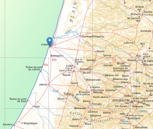 The only natural port between Sicaminon (Haifa) and the Israeli-Egyptian border. It is the port of Jerusalem, which is 55 km away. The cedars used for the construction and later reconstruction of the Temple were brought there from Lebanon. It was fortified by the Maccabees.