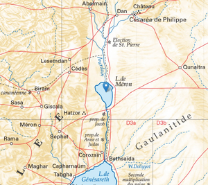 "At a glance, I would say that this small Water plan can be about three kilometers by two. It is little, Good little, as you see. But it is graceful, in its frame of greenery. It is a mirror so azure and so calm that one would say a large scale of celestial enamel, with in the center a lighter and slightly moving coloration, undoubtedly due to the current of the river that flows into it from the north and exits from the south. Because of the shallow depth of the lake, the current crosses it like a living vein in the middle of stagnant Water, marking its Presence with a different color and a slight agitation of its Waters. No sailing boats on this small lake. But only a few small boats from which a lone fisherman lowers or pulls up his nets, or which a traveler borrows to shorten his route."[1]A small grayish-yellow lake because of the mud from the thousand swollen streams, and because of the cloudy November sky. A small mirror of Water fed by the upper Jordan, which then flows out to feed the other larger lake of the Gennesaret Plain.