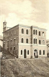 Indeed, Father Giovanni Pepe had an obsession: to open a home and rest place for the most disadvantaged[19]. The opportunity arose with the sale of a dilapidated church in his hometown, known as the chiesa del Calvario (Church of Calvary). His superiors encouraged him in his initiative[20]. He found the funds to buy this church and the land and on February 29, 1922, he became the owner. Shortly after, on April 23, 1924, the municipality granted the adjacent land free of charge[19]. It was at this time he was appointed Monsignore[21]. He then settled, with his sister Carmela, in an adjacent room renovated at his own expense. It was from there he could attend the laying of the first stone (June 2, 1929, when he was 49) of the building for the retirement home adjacent to the renovated church.
