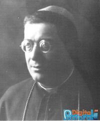 Mgr Michele Fontevecchia, born May 8, 1886 in Fermo and died Tuesday, January 16, 1959 in the same city where his uncle, Don Domenico Fontevecchia, had founded a renowned college which he took care of during his career. He was bishop of the diocese of Aquino-Sora-Pontecorvo from 1936 to 1952. Solicited by the Servants of Mary under the advice of Mgr Montini (future Paul VI) to grant the imprimatur to the work of Maria Valtorta, he offered to grant it[1].