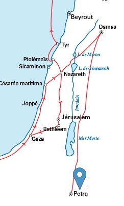 Capital of the Nabatean kingdom, Petra was a vast thriving city at the time of Jesus. Caravans loaded with incense, silks, spices, and other exotic products stopped at Petra where they found protection and plenty of water. As attested in the work by a merchant: "I am from Petra, Lord. I transport on behalf of others goods coming from the Red Sea up to Damascus"[5].