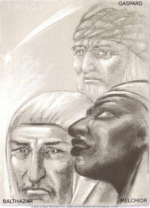 They are men of science and faith. They are powerful and rich. Astrologers, each of them notices, independently, the appearance of an unknown star. "Born from the bosom of God, it had blossomed to announce to men a blessed truth, a secret of God. But men paid no attention to it, for their souls were sunk in the mud. They did not lift their eyes toward God and did not know how to read the words He traces—may He be eternally blessed—with the stars of fire across the vault of the heavens," explains the eldest of the three later to the Virgin Mary.[2]