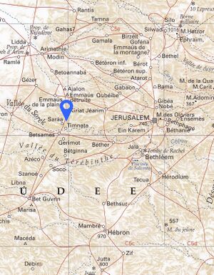 According to Maria Valtorta, Timnath would therefore be located a little east of Zorah (Soréa, Çoréa) (the homeland of Samson), which remains entirely compatible with the biblical context[3].